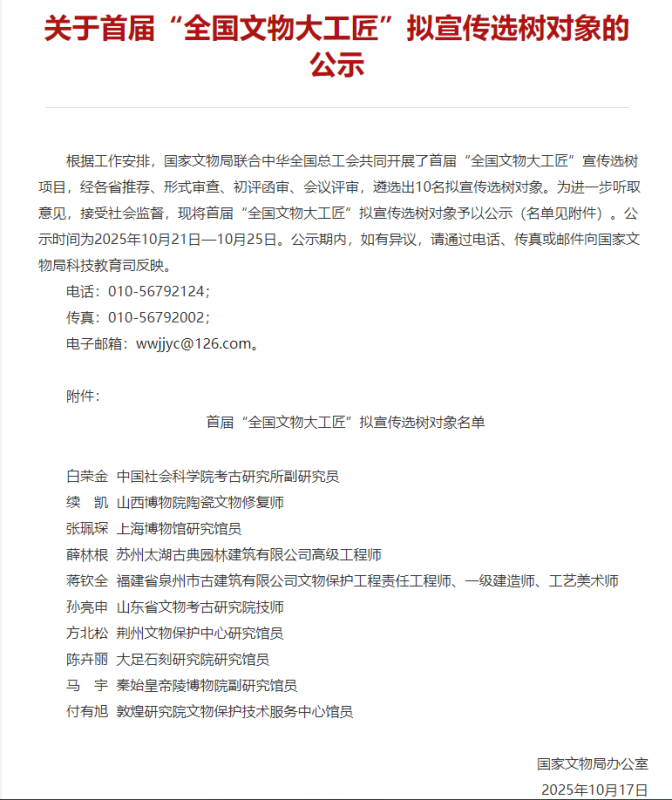 近日,国家文物局公布了2025年度“全国文物大工匠”宣传选树对象10人名单。福建省泉…